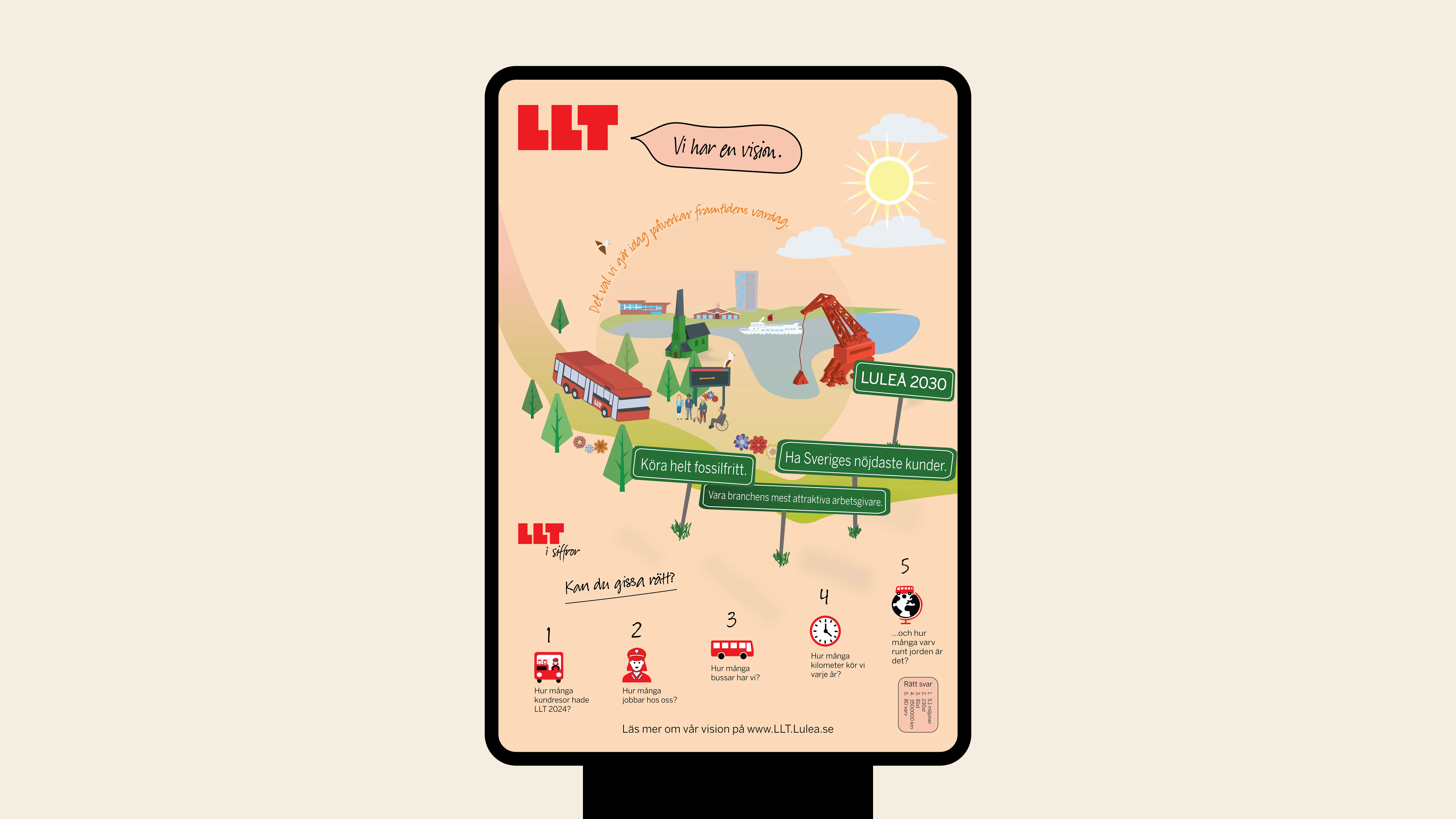 Inom en universitetskurs fick vi i uppdrag att ta fram en hypotetisk kampanj baserad på Luleå Lokaltrafiks visioner för år 2030. Projektet fokuserade på hur kollektivtrafiken kan upplevas mer tillgänglig, tydlig och integrerad i stadens vardagsliv.