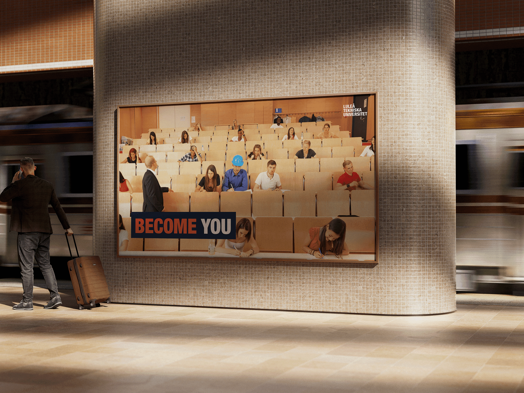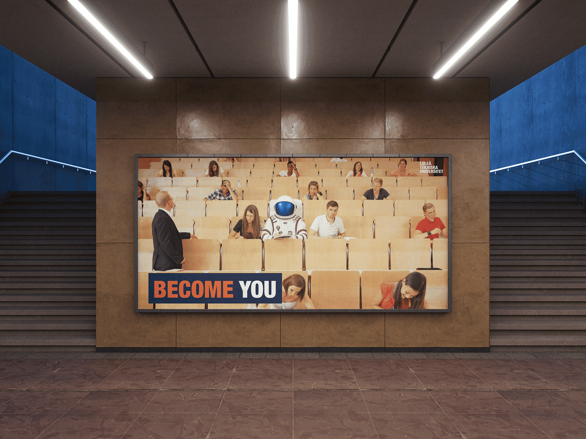 Under min praktik på kommunikationsavdelningen vid Luleå tekniska universitet arbetade jag inom deras varumärkesarbete och vidareutvecklade konceptet “Become You”. Arbetet omfattade konceptutveckling, visuella kampanjidéer samt design av profilmaterial, däribland universitets ambassadörströjor.