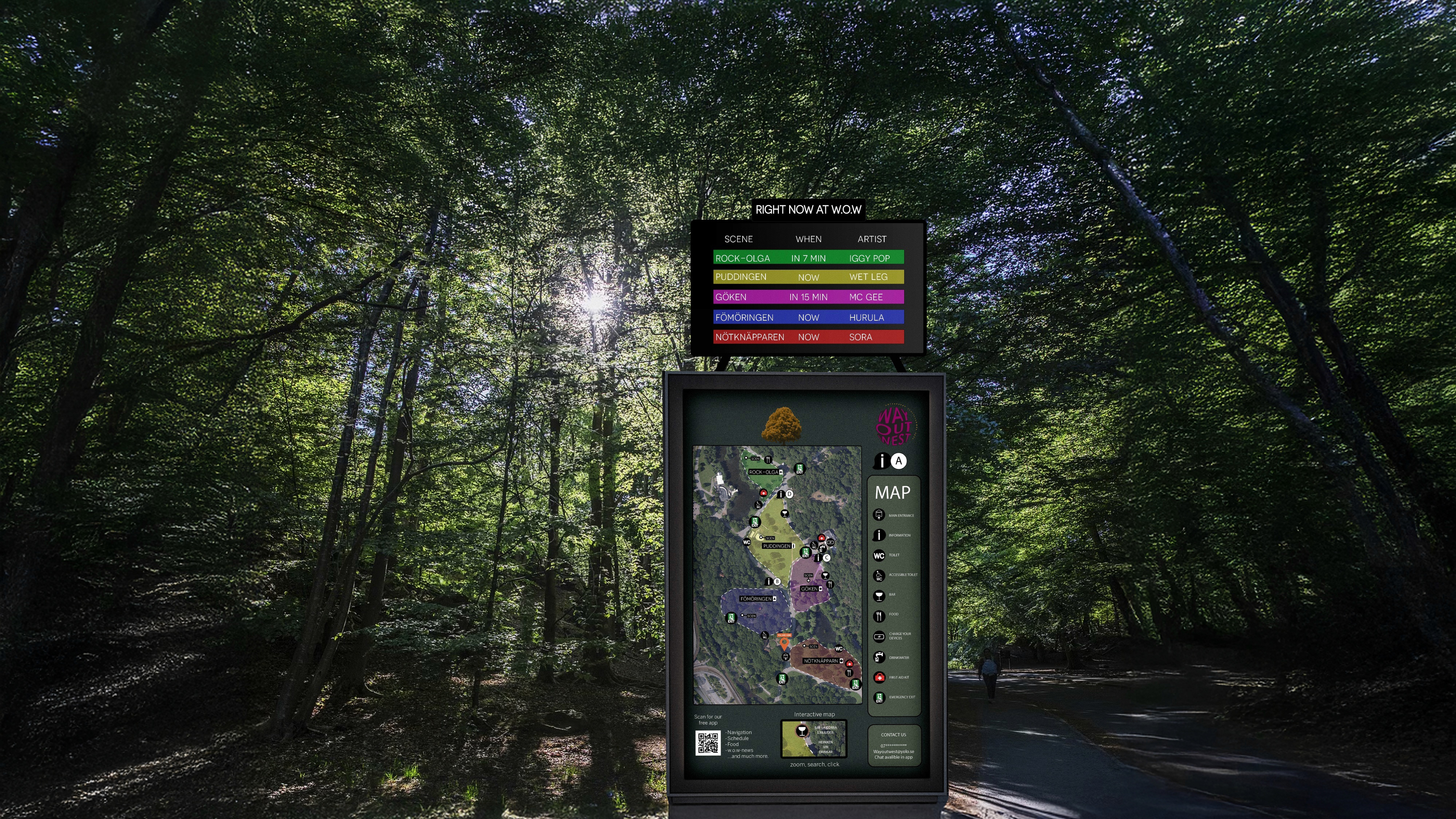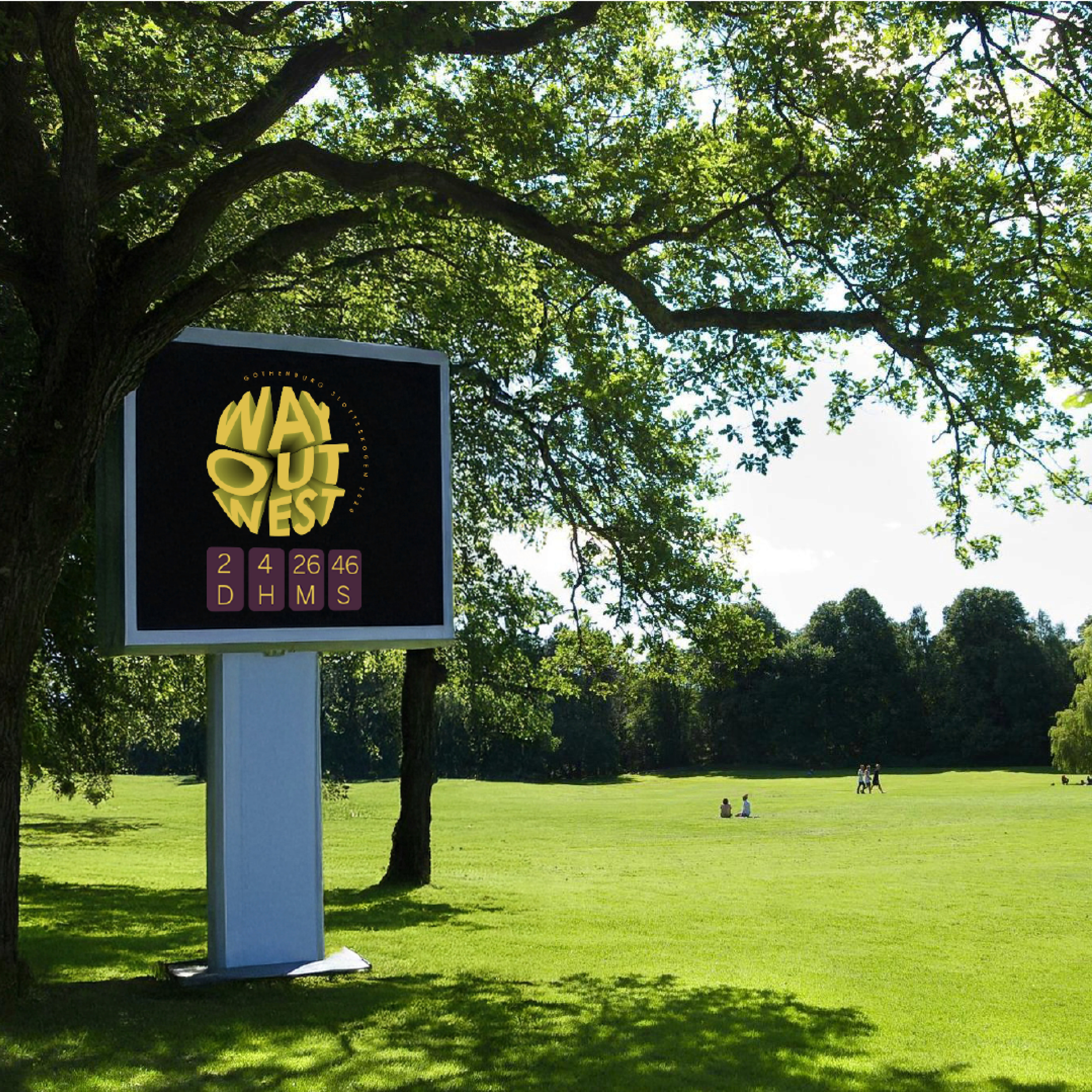 I en wayfinding-uppgift på universitetet skulle vi skapa en ny visuell identitet för en valfri organisation eller plats. Jag valde festivalen Way Out West och fokuserade på att utveckla ett mer sammanhållet visuellt system än festivalens tidigare, ofta varierande uttryck.